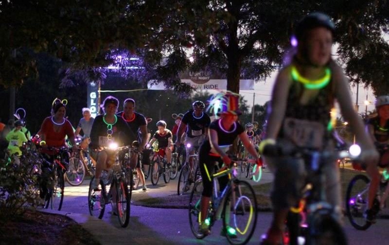 The event will start at 8:30 pm at the soccer complex. Staff will have a couple thousand free, 8-inch and 22-inch glow sticks for participants who need some extra neon glow on their bikes. Staff will have water available on site and cookies donated by Chick-fil-A.