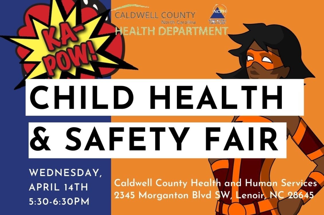 LENOIR, NC (April 7, 2021) — The Caldwell County Health Department will host the 2021 Child Health and Safety Fair on Wednesday, April 14, from 5:30-6:30 p.m. in the parking lot of the Health and Human Services Building, 2345 Morganton Boulevard, Lenoir. The rain date is April 21.