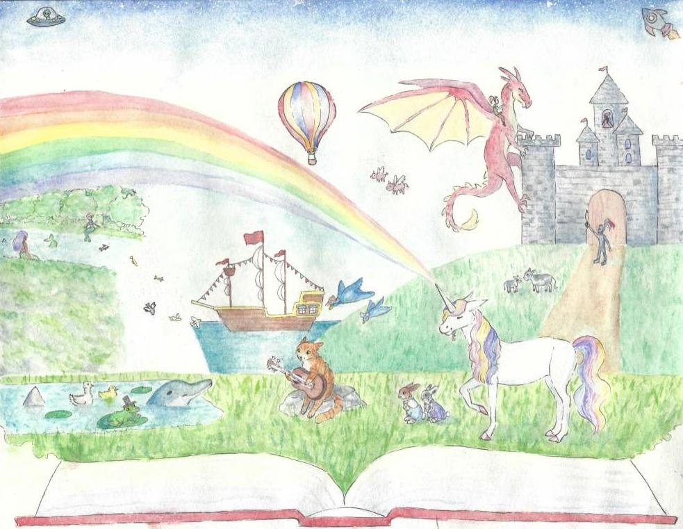 Weaver submitted a design featuring an open book and out of the pages emerged many different beloved storybook images. The images include a unicorn, a pirate ship, a dragon, a cat playing the fiddle, and many more works of childhood fantasy. She will join members of the Caldwell Early College Art Club to paint the mural on a wall in the children’s section of the new Southern Branch, which will focus primarily on serving children, teens, and young adults.