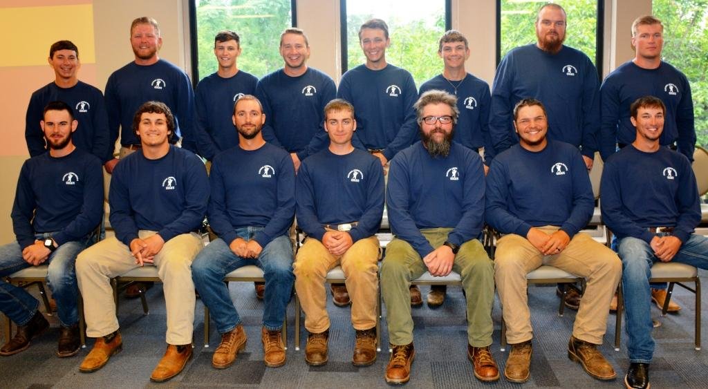 HUDSON, NC (July 23, 2018) — Caldwell Community College and Technical Institute celebrated a new class of Electrical Linemen with a completion ceremony on Friday, July 20 at the J.E. Broyhill Civic Center in Lenoir. Those recognized at the ceremony were: Front row, left to right, Dillon Franklin of Lenoir, Craig Clark of Rutherfordton, Philip Bumgarner of Granite Falls, Jonathan Bruce of Lenoir, Albert Brewer of Granite Falls, Robert Bowen of Morganton and Tevin Armes of Lenoir; Back row, left to right, Jarrette Young of Hickory, Ridge White of Browns Summit, Noah Walker of Hickory, Chase Vance of Taylorsville, David Thomasson of Lenoir, Jesse Tevepaugh of Taylorsville, Hunter Hefner of Granite Falls and Jonathan Harris of Taylorsville. For Electrical Lineman program information or to register, call 828-726-2242.