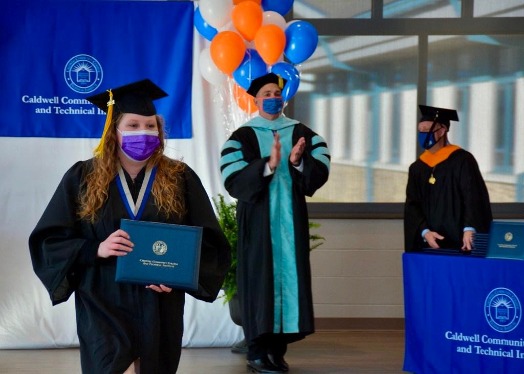 HUDSON, NC (May 10, 2021) — Caldwell Community College and Technical Institute hosted drop-in graduation ceremonies for the Class of 2021 Thursday evening at the Watauga Campus in Boone and Friday evening on the Caldwell Campus in Hudson.