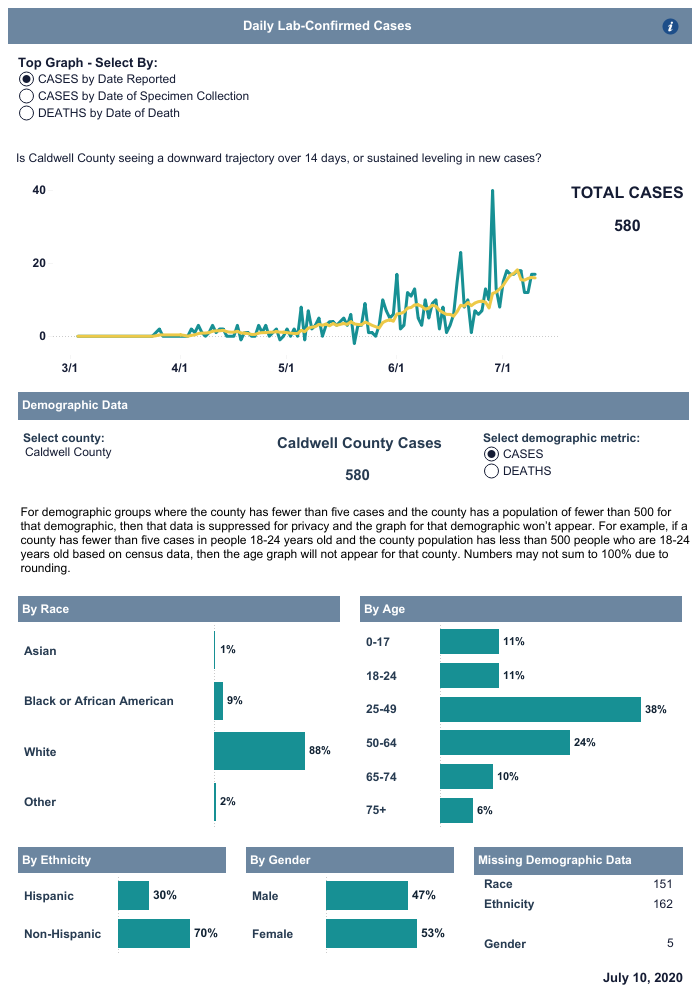 LENOIR, NC (July 10, 2020) — Here is the Caldwell County Health Department COVID-19 Update for Friday, July 10, 2020.