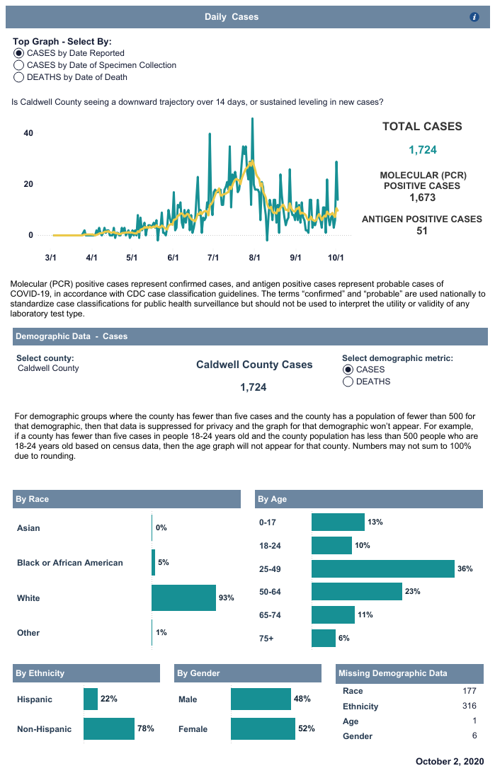 LENOIR, NC (October 2, 2020) — Here is the Caldwell County Health Department COVID-19 Update for Friday, October 2, 2020.