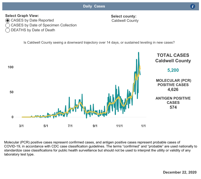 LENOIR, NC (December 22, 2020) — Here is the Caldwell County Health Department COVID-19 Update for Tuesday, December 22, 2020.