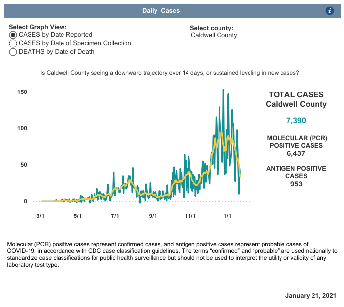 LENOIR, NC (January 21, 2021) — Here is the Caldwell County Health Department COVID-19 Update for Thursday, January 21, 2021.