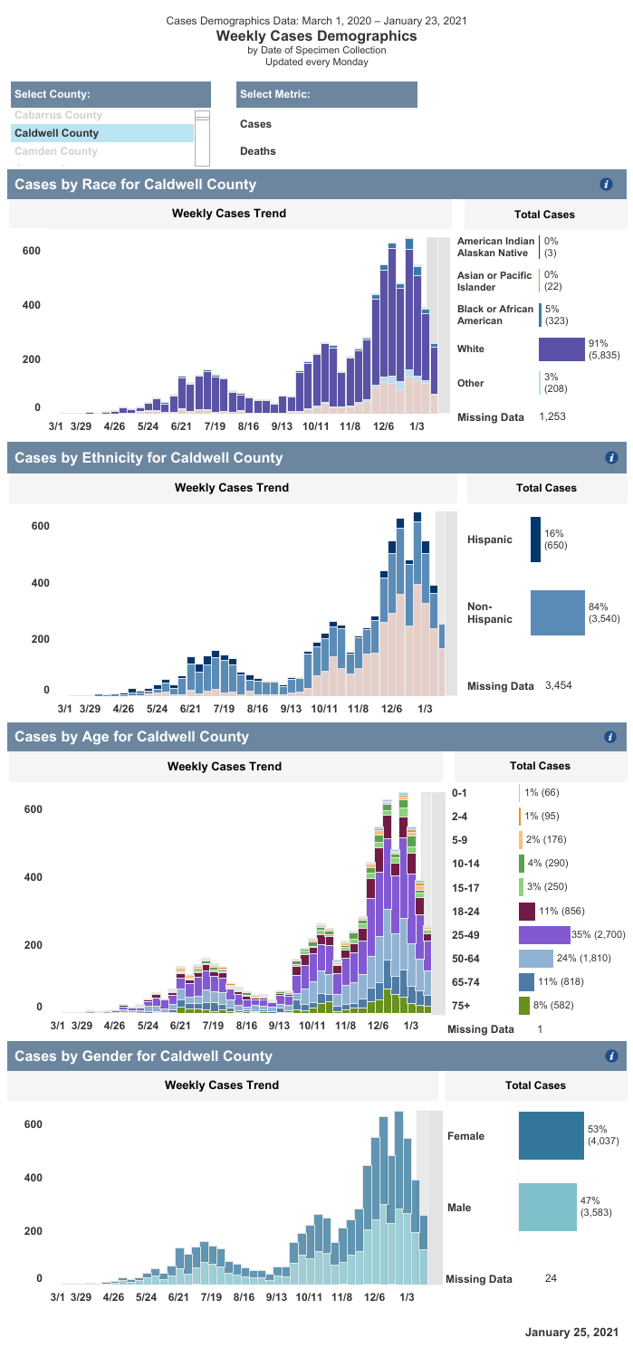 LENOIR, NC (January 25, 2021) — Here is the Caldwell County Health Department COVID-19 Update for Monday, January 25, 2021.