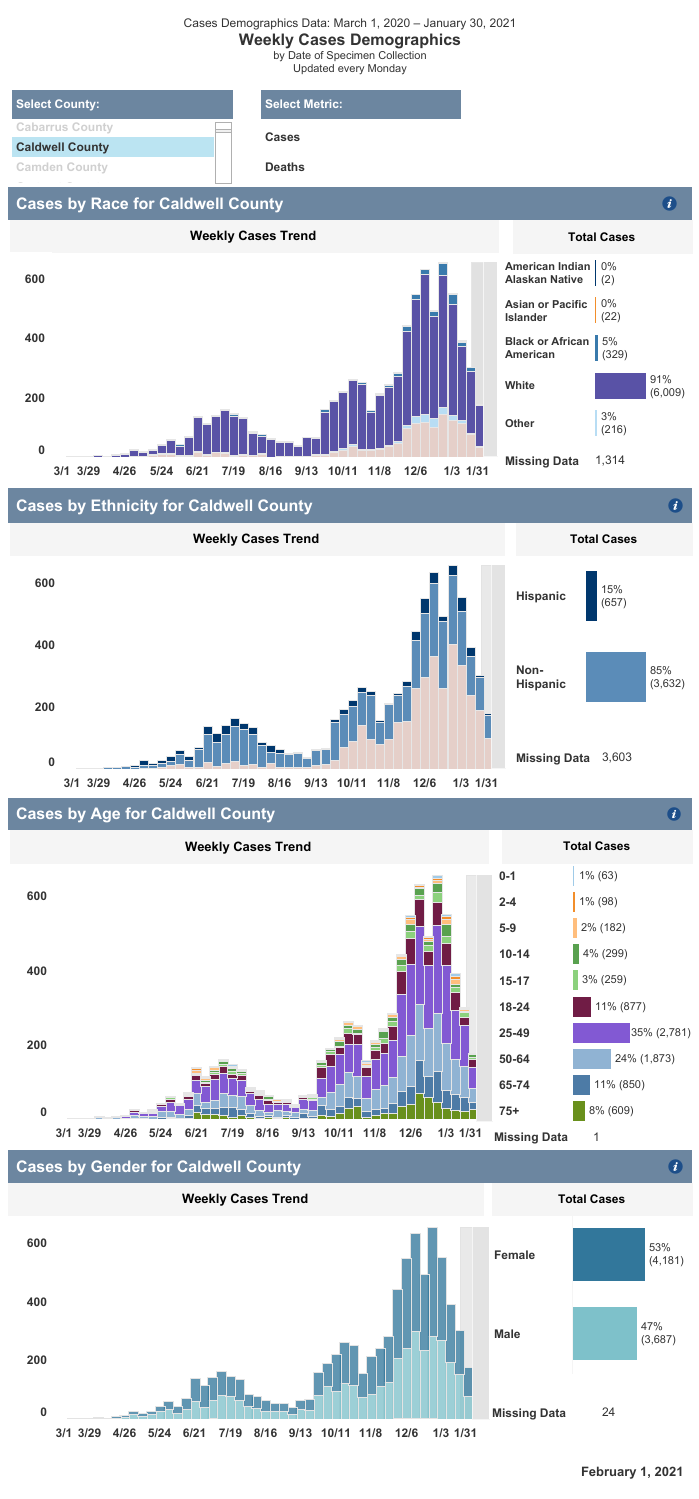LENOIR, NC (February 1, 2021) — Here is the Caldwell County Health Department COVID-19 Update for Monday, February 1, 2021.