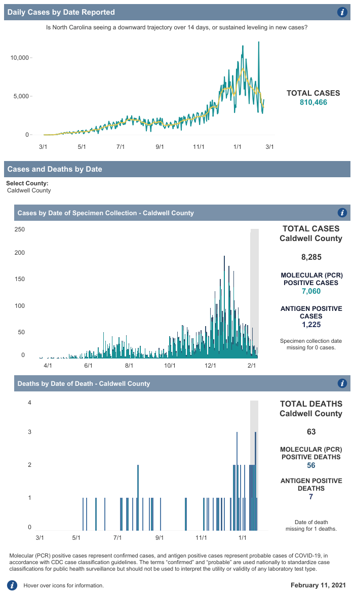 LENOIR, NC (February 11, 2021) — Here is the Caldwell County Health Department COVID-19 Update for Thursday, February 11, 2021.