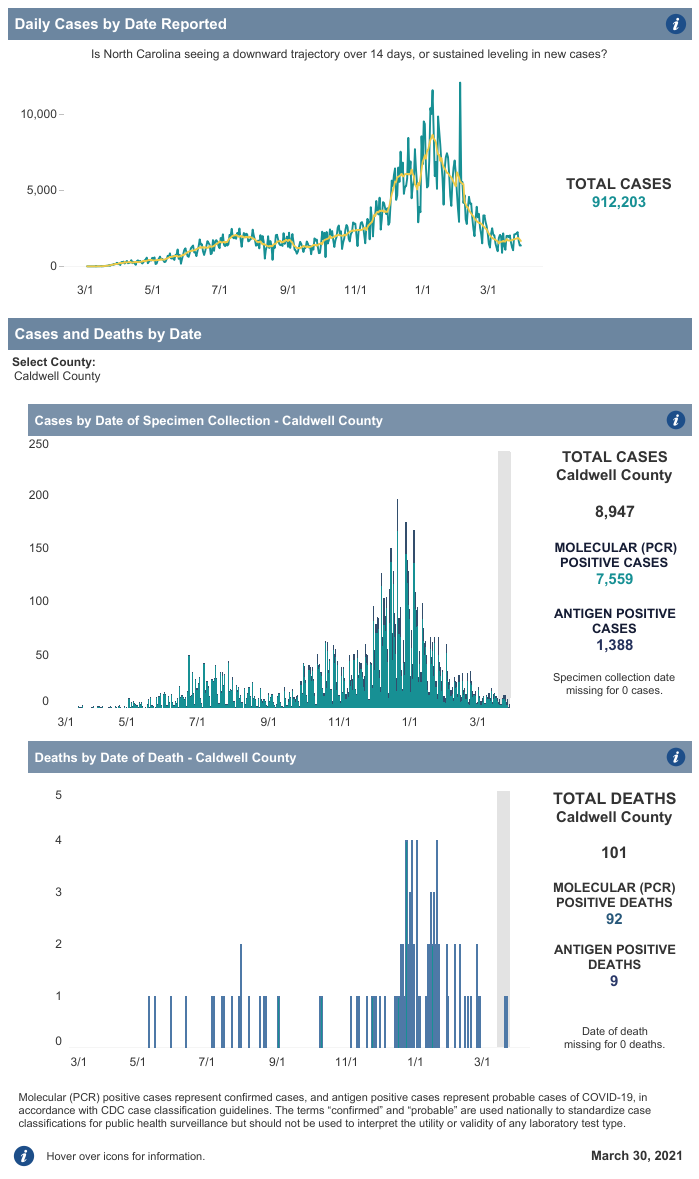 LENOIR, NC (March 30, 2021) — Here is the COVID-19 Update for Tuesday, March 30, 2021.