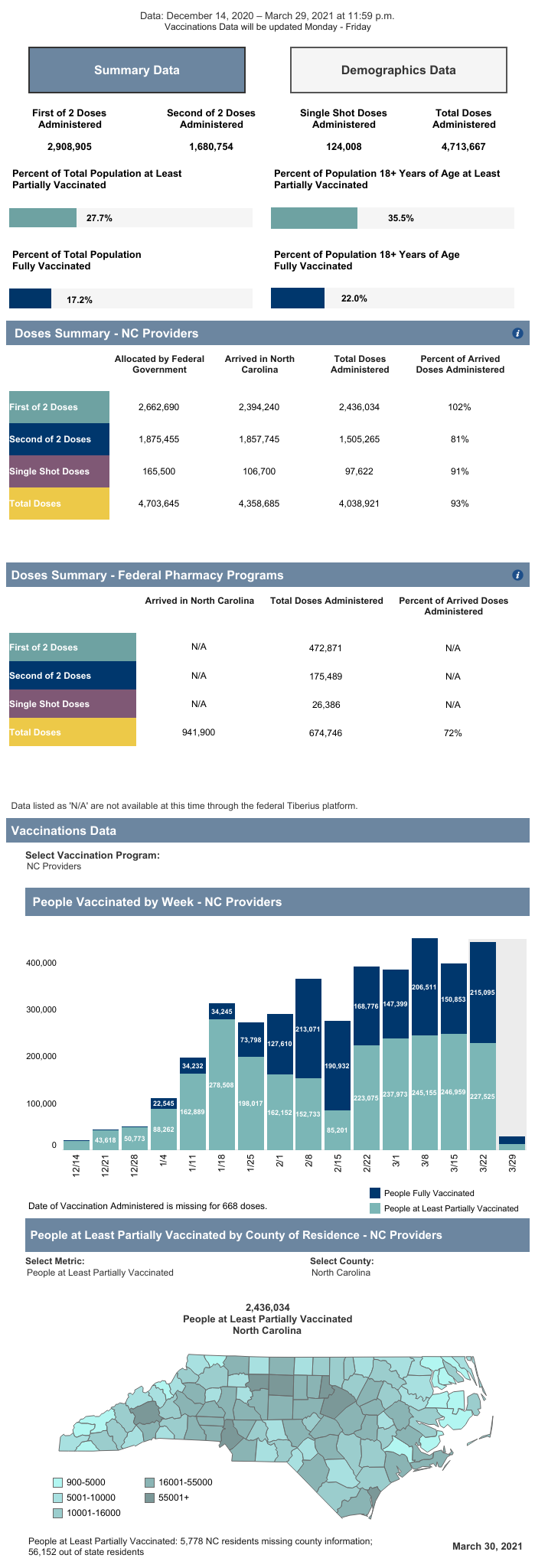 Over 31,500 vaccines have been administered in the county, resulting in 22.2% of the population being partially vaccinated and 16.2% fully vaccinated.