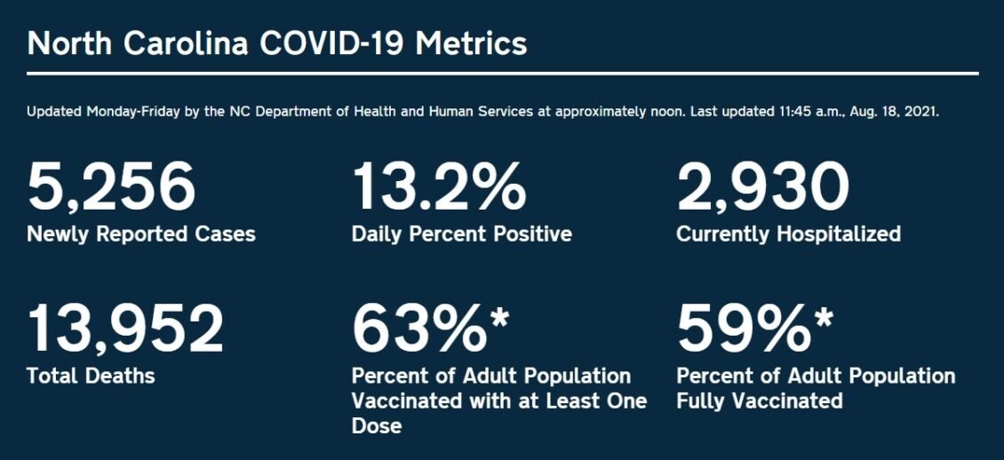 LENOIR, NC (August 18, 2021) — Here is the COVID-19 Update for Wednesday, August 18, 2021. “Due to the rising number of COVID cases in our community, we will resume updates on Mondays and Wednesdays.” – Caldwell County Health Department