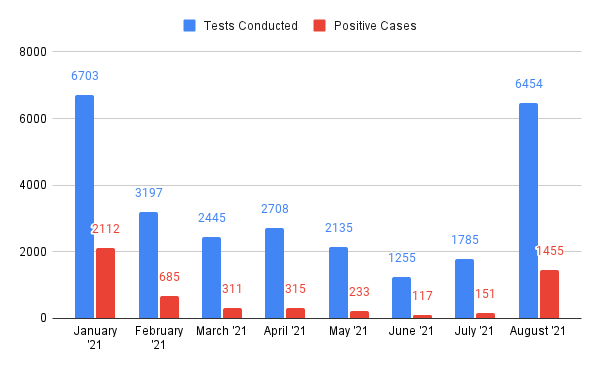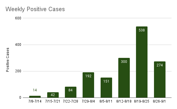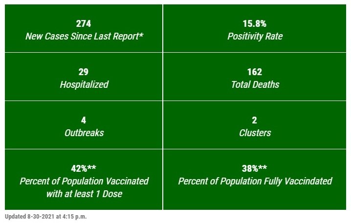 Monday, August 30, 2021 (Data from August 26th through August 30th)