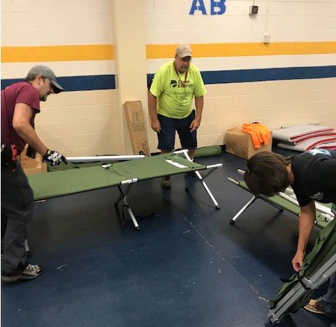Members donated over 200 hours last weekend serving the community during the storm. They served in the county’s Emergency Operations Center (EOC) and the emergency shelter at West Caldwell High School where 13 people and 3 pets took refuge. REACT volunteers set up the cots, helped monitor the shelter 24 hours a day while it remained open, and put it away when the shelter closed Monday. They staffed radio communications as joint members of the Lenoir Amateur Radio Club in the EOC and shelter.