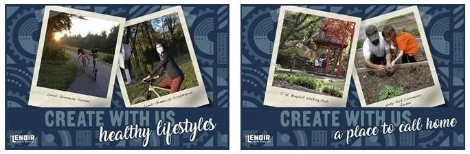 The tagline is an invitation to be part of the City of Lenoir and its future. It builds on the Downtown Lenoir tagline of “Together We Create.” Staff can also add to the tagline depending on what is being promoted.