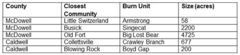 Prescribed burns planned on the Grandfather Ranger District to reduce wildfire risk and improve forest health