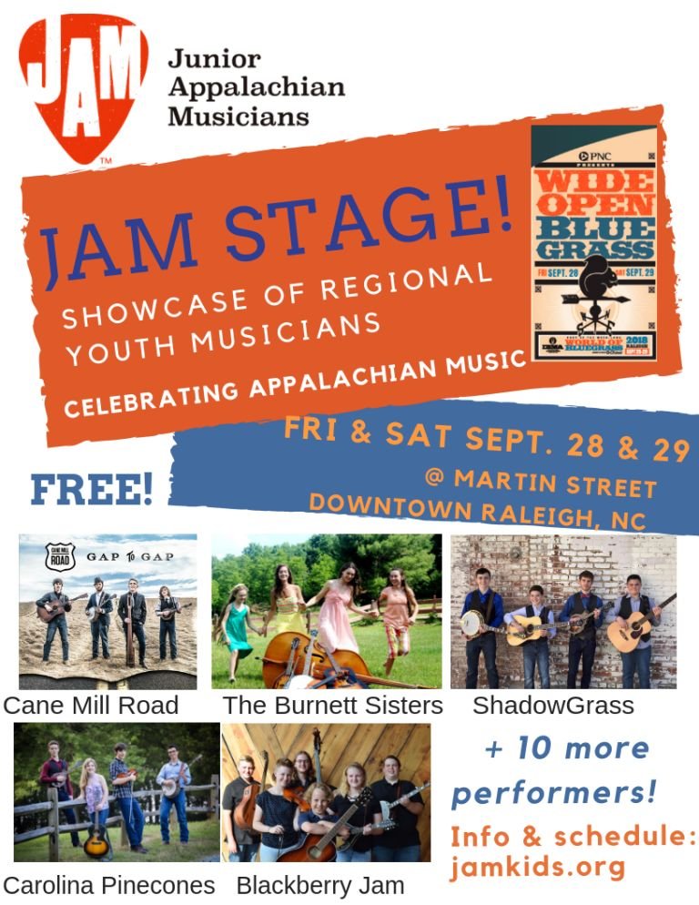 The full schedule is available online at www.wideopenbluegrass.com or at www.jamkids.org. This project is made possible through the JAM Board of Directors, the North Carolina Arts Council, and many private donors.