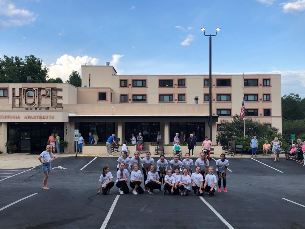 LENOIR, NC (June 24, 2020) — On Monday, June 22nd, Starsteps Dance Center dancers entertained residents at Koinonia in Lenoir. Michelle Crisp, director of Starsteps, drove past Koinonia in April and saw the HOPE sign on the building. She knew then that she wanted to do something for the residents who were encouraged to stay in during this time. Michelle reached out to Chassidy Triplett back in May to see how Starsteps dancers could perform for the residents, perhaps in the parking lot.