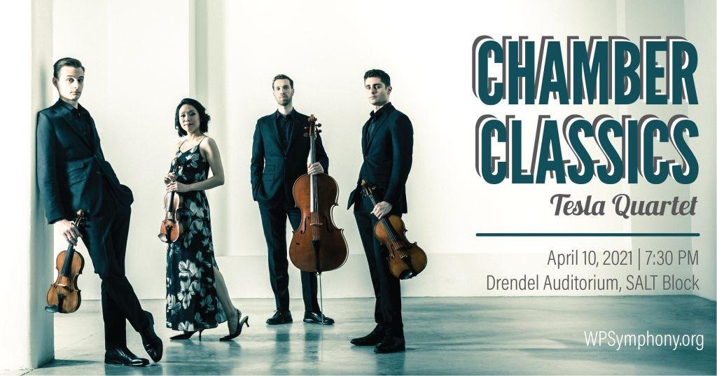 HICKORY, NC (March 29, 2021) — The world-renowned Tesla Quartet returns to Hickory for a two-week residency with the Western Piedmont Symphony, kicking off with a Chamber Classics performance on April 10, 2021 at the Drendel Auditorium at the SALT Block and via livestream at 7:30 P.M. This concert will feature pieces by Mozart, Dvoṙák and Puccini.