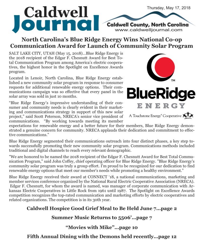 CALDWELL COUNTY, NC (May 17, 2018)…This week’s Caldwell Journal is available to read as a PDF or as a Booklet. Just click on the links below. You can also read any of our past editions by clicking on “Back Issues” above.