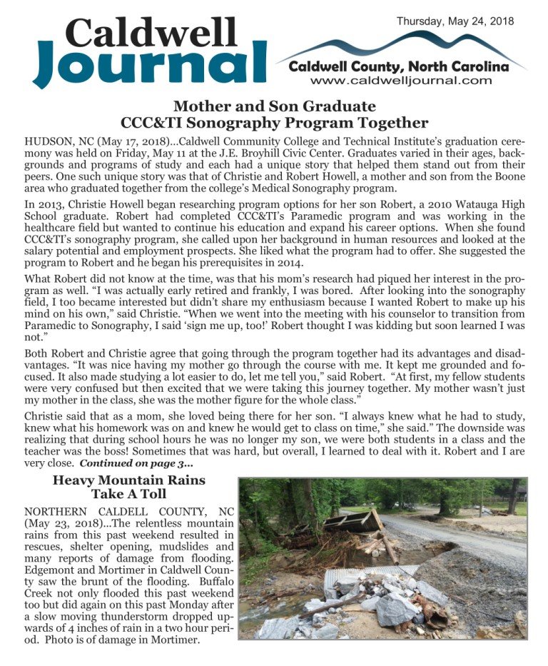 CALDWELL COUNTY, NC (May 24, 2018)…This week’s Caldwell Journal is available to read as a PDF or as a Booklet. Just click on the links below. You can also read any of our past editions by clicking on “Back Issues” above.