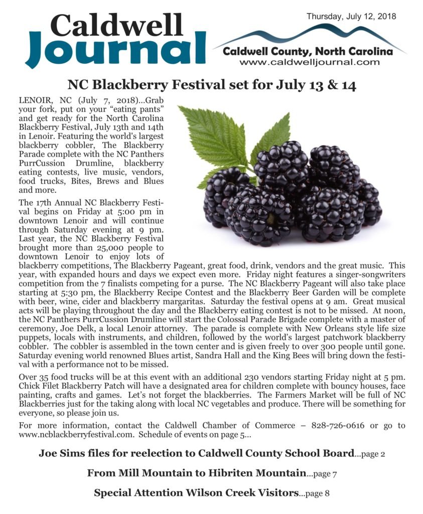 CALDWELL COUNTY, NC (July 12, 2018)…This week’s Caldwell Journal is available to read as a PDF or as a Booklet. Just click on the links below. You can also read any of our past editions by clicking on “Back Issues” above.