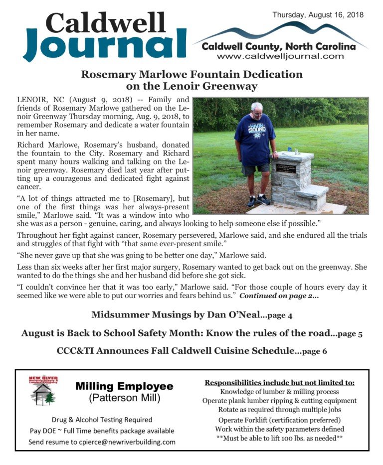 CALDWELL COUNTY, NC (August 16, 2018)…This week’s Caldwell Journal is available to read as a PDF or as a Booklet. Just click on the links below. You can also read any of our past editions by clicking on “Back Issues” above.