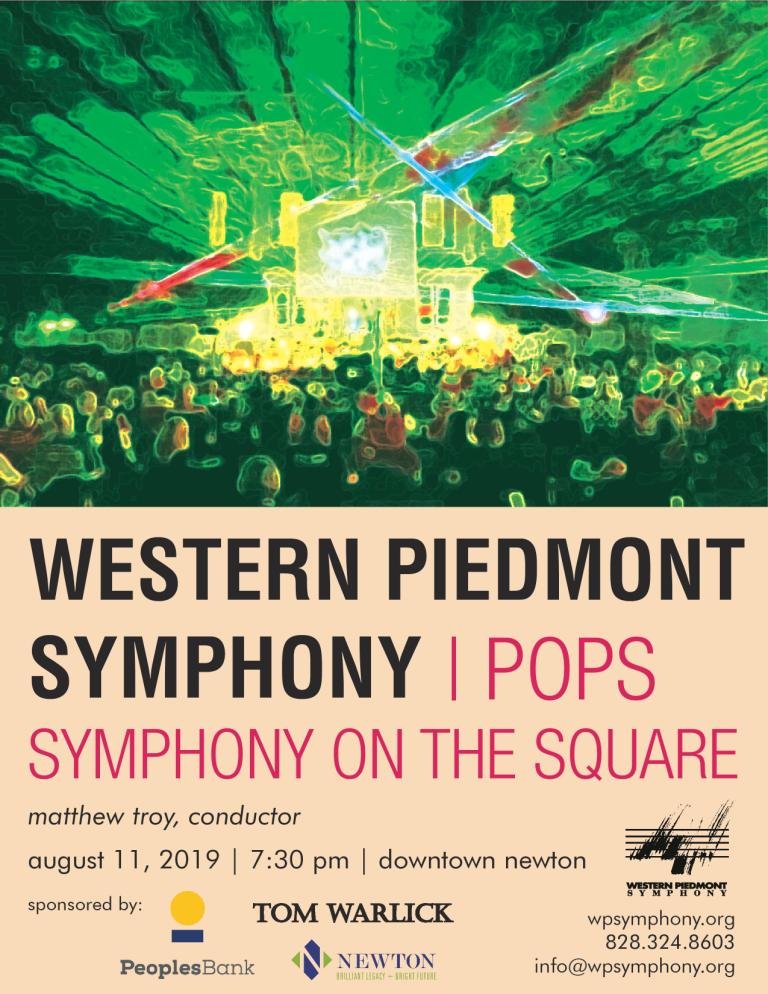 HICKORY, NC (July 29, 2019) — The Western Piedmont Symphony will perform a free, outdoor concert, “Summer Pops: Symphony on the Square” as part of the Soldier’s Reunion Celebration on Sunday, August 11th.