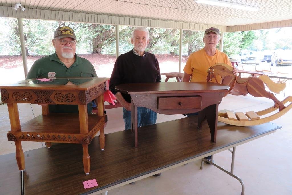 HICKORY, NC (October 17, 2021) — The Western Piedmont Woodcrafters Club announced annual woodworking contest winners as determined by club member votes. In the advanced group, Bruce Swanson won first place with an end-table; Val Minch was second with a coffee table; and S. W. Williford was third with a rocking horse. In the novice/intermediate group, Michael Dodgin was first with a router-bit holder; and Norman Hilmer was second with a wheel barrow of flowers.
